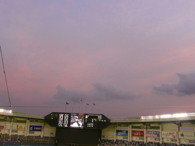 試合開始直後の空。いい感じに日が暮れてきました↑
