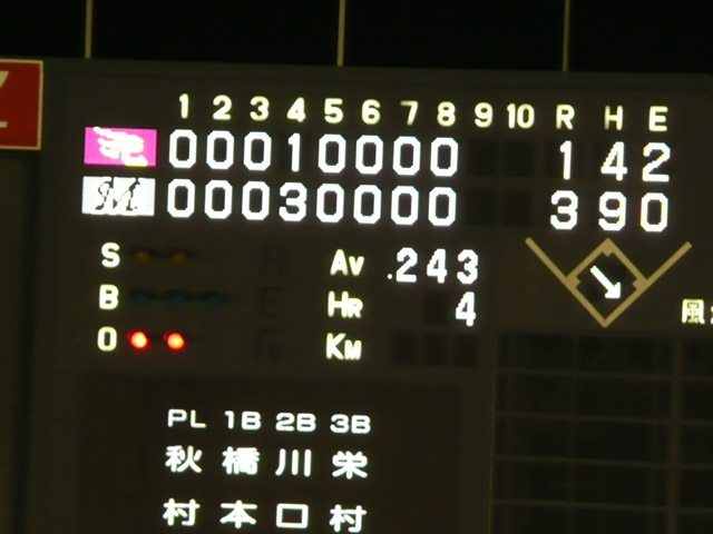 終電に間に合わなくなるので、私達は9回裏終了後に帰りました。